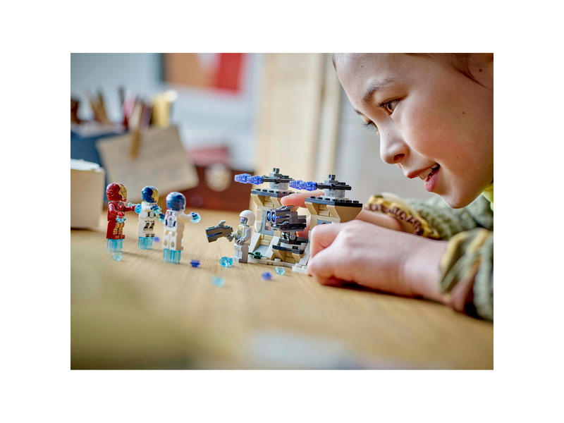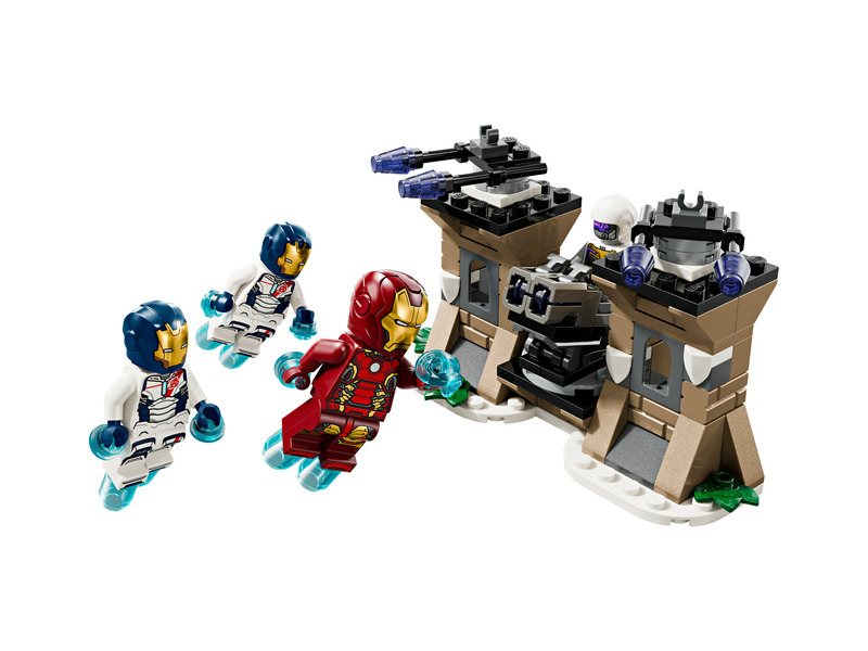 A szett 4 minifigurát tartalmaz: Vasember, 2 vaslégiós és egy Hydra-katona. A megépíthető Vasember játéknak felnyitható a maszkja, és egy sugárvetőt tart. A Hydra-katonánál korongvető van. A szett kék kockákat is tartalmaz, amelyeket azt a hatást keltik, hogy a minifigurák repülnek. A megépíthető Hydra-bázison 2 korongvetőt erősítettek a forgó padlóhoz, ahová a gyerekek a Hydra-katonát helyezhetik, hogy célba vegye az érkező szuperhősöket. A bázis tornyainak tetején 2 pár (nem tüzelő) rakétavető található, hogy elhárítsák a támadást. A szett digitális tulajdonságai a LEGO Builder appban érhetők el.