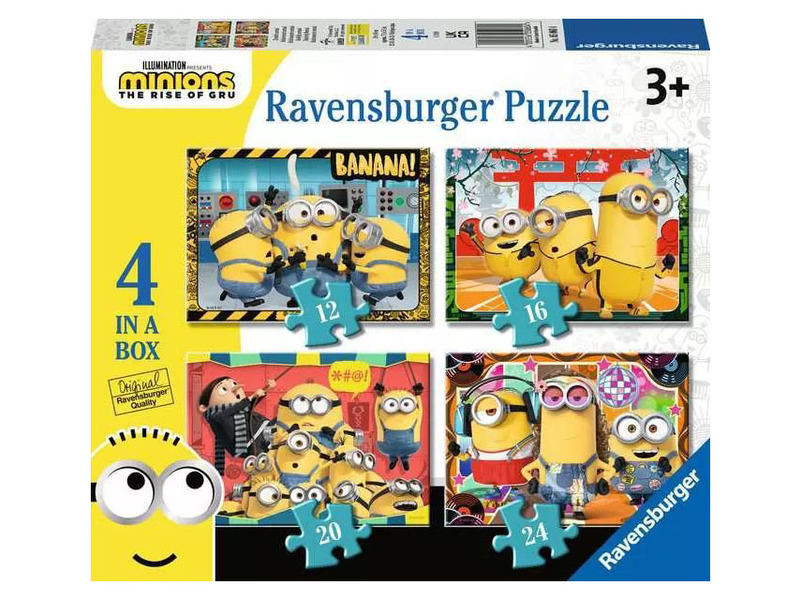 Puzzle 4in1 - Minyonok 2 – Négy puzzle egy csomagban a Minyonok rajongóinak. Fedezd fel a Minyonok világát ezzel a 4in1 puzzle készlettel! A "Minyonok 2" puzzle tökéletes választás minden korosztály számára, akik szeretik a kihívásokat és a szórakozást. Négy különböző puzzle képen cuki Minyonok és Gru láthatók, amelyek garantáltan szórakozást nyújtanak minden kirakós rajongónak. Ez a puzzle készlet nemcsak szórakoztató, hanem fejleszti a koncentrációt és a problémamegoldó képességeket is. Merülj el a Minyonok világában, és élvezd a kirakás örömét ezzel a fantasztikus puzzle készlettel! Csatlakozz a mókához ezzel a négy kiváló minőségű kirakós játékkal, mely 12, 16, 20 és 24 darabos.