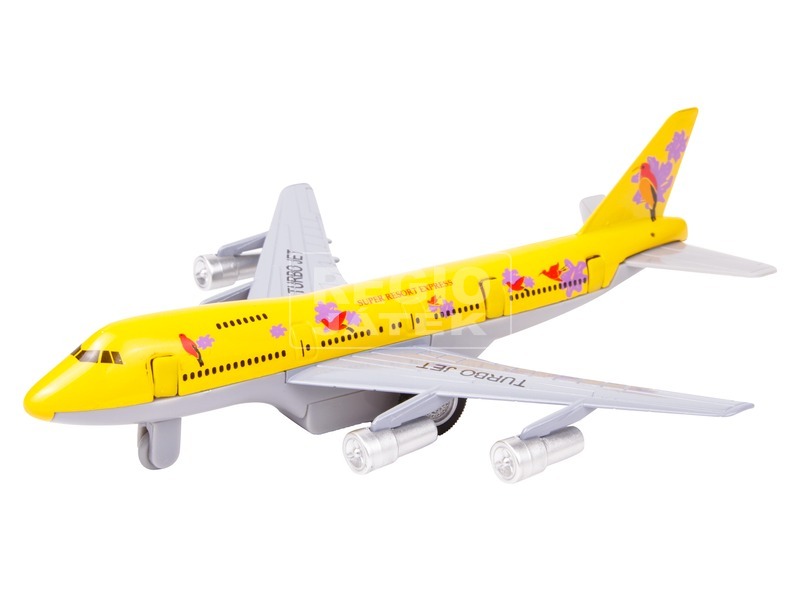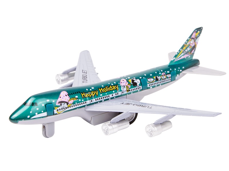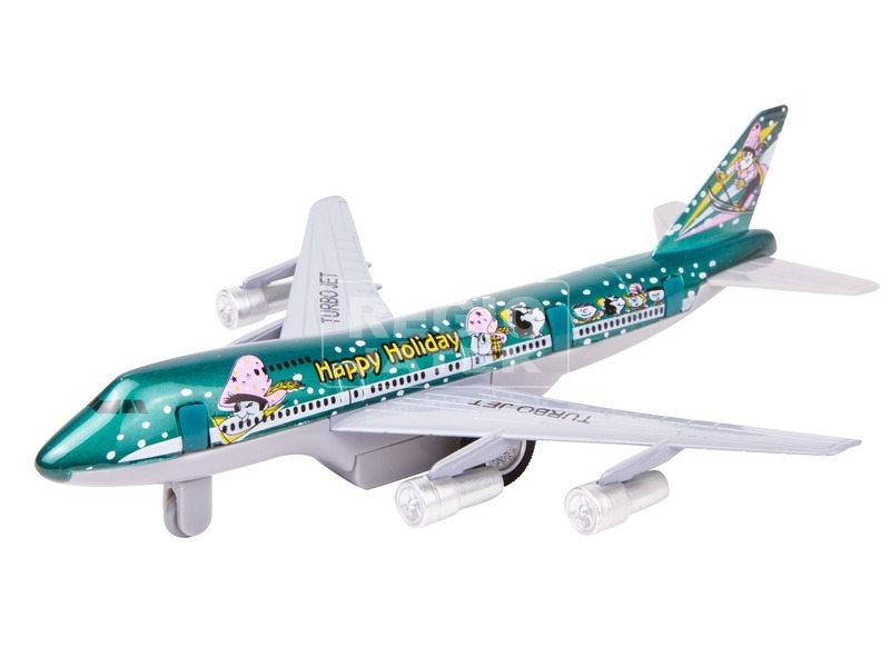 Vidd az utasokat a fém repülővel! A Turbo Jet fém repülőgép egy élethű utasszállító repülőgép, hátrahúzós meghajtással. A repülő hajtóművei csillognak, az repülőgép ajtajait a gép alján lévő kapcsolóval tudod nyitni és zárni. Tedd a repülőt a padlóra, húzd hátra, és amikor elengeded, magától előre fog gurulni. A Turbo Jet fém repülőgép mérete: 18 cm. A játékok külön kaphatóak. A megjegyzésben kérjük tüntesd fel, hogy melyik változatot szeretnéd!