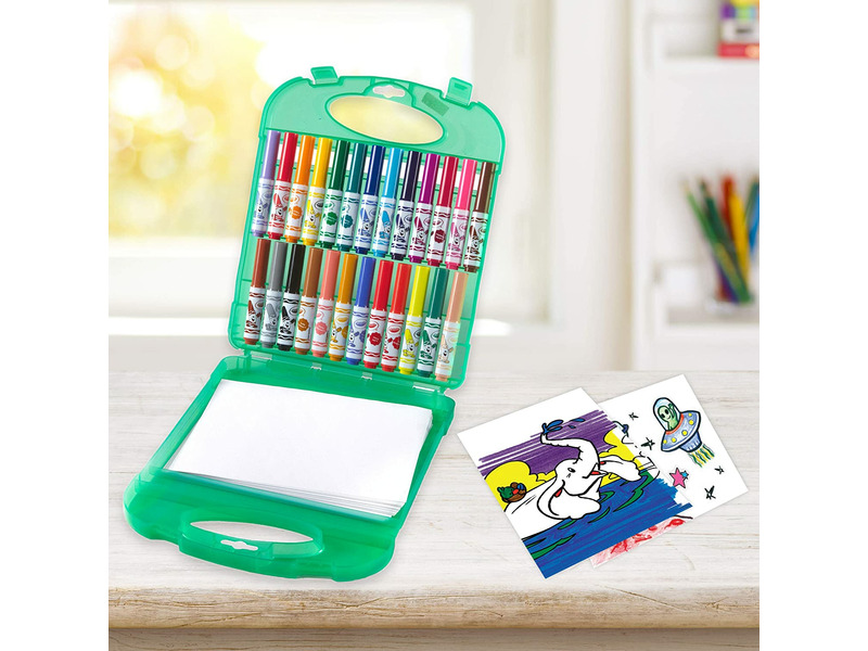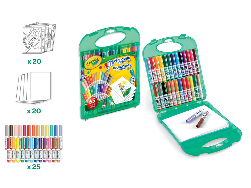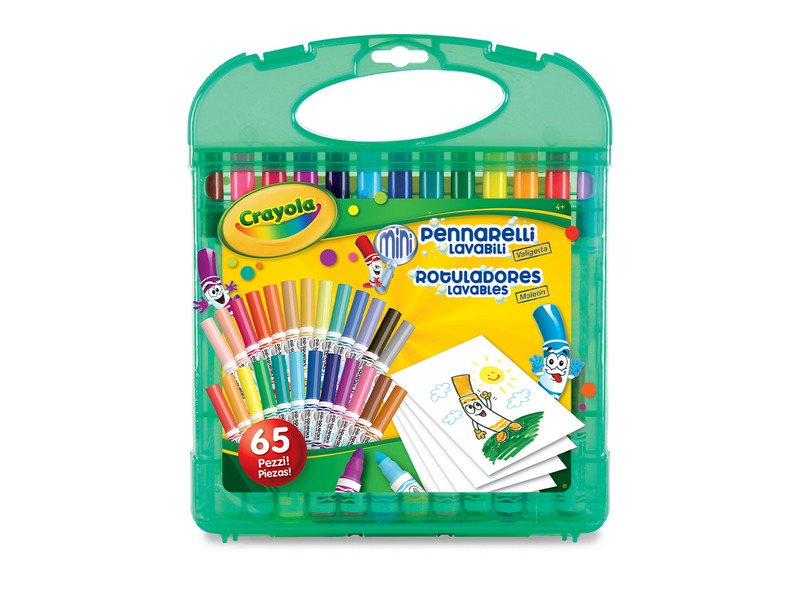 A lemosható Crayola filctollakat pofonegyszerű letörölni a lemosható felületekről, így a gyerekek valóban megélhetik kreativitásukat. Sőt, a bőrről is egyszerűen lejön, úgyhogy tényleg nincs mitől tartani. A Crayola filctollak vége nem kopik, nem szálasodik és nem szárad ki. A csomagban 65 darab jó minőségű, mini méretű, hosszantartó filctoll található, és a dobozban még a rajzlapok is elférnek, így a kicsit bárhova magukkal vihetik.