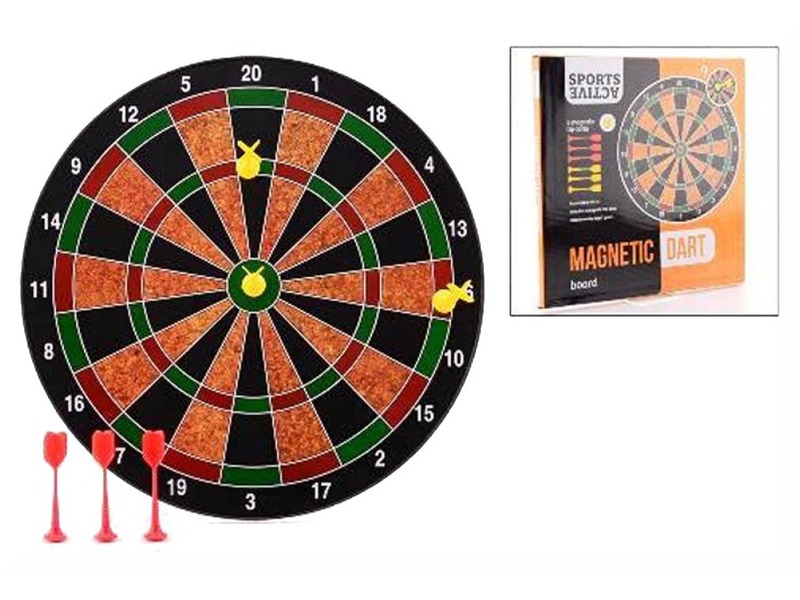 Melyikőtök tud jobban célba dobni? A Mágneses darts készlet egy szabványos mintájú Darts táblát, és hat nyilat tartalmaz, amikkel fejleszthetitek a célzó tudásotokat! A nyilak erős mágnessel tapadnak a táblához, a táblát szinte bárhova fel tudjátok akasztani, és miközben játszotok, a fejben számoló tehetségetek is fejlődik! Játsszatok 301-es vagy 501-es meccseket! A Mágneses darts készlet táblájának átmérője: 40 cm, nyilak mérete: 9 cm.
