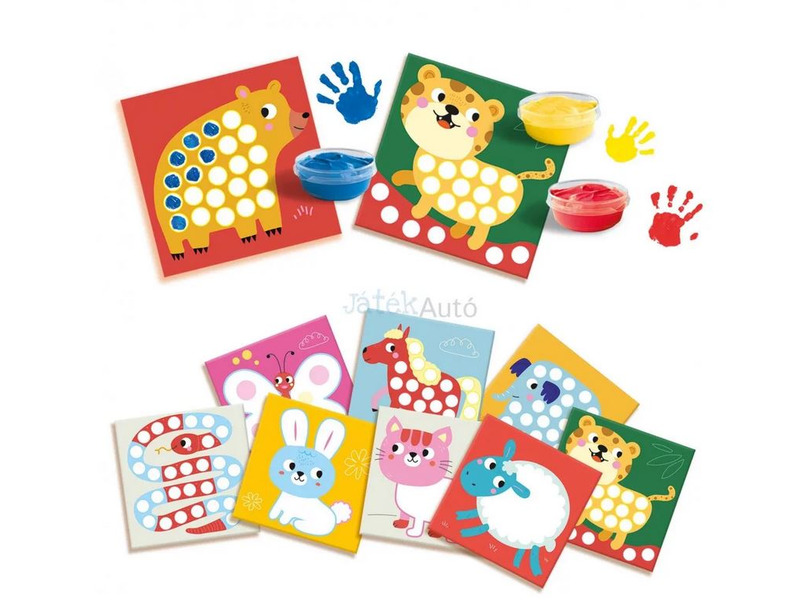Az Az első ujjfestékem – Állatok egy kreatív és fejlesztő játék. A készlet tartalmaz különböző színű ujjfestékeket és állatos sablonokat, amelyekkel a gyerekek szabadon alkothatnak. Az ujjfestékek biztonságosak és könnyen lemoshatók, így a szülőknek sem kell aggódniuk a rendetlenség miatt.