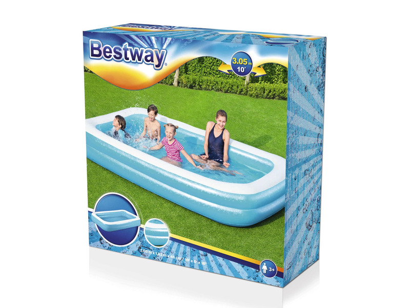 • Méretek: 305 cm hosszú, 183 cm széles és 46 cm magas, így bőséges helyet biztosít a pancsoláshoz.