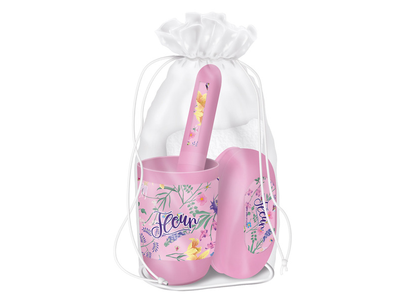 A Tisztasági csomag Fleur egy színes és vidám készlet, amely tökéletes választás a fiatalok számára, akik szeretnék kifejezni egyedi stílusukat és gondoskodni a személyes higiéniájukról