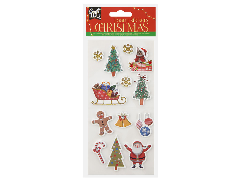 Tartalom: A csomag különböző karácsonyi témájú szivacsmatricákat tartalmaz, mint például Mikulás, hóember, karácsonyfa, ajándékok és egyéb ünnepi motívumok.