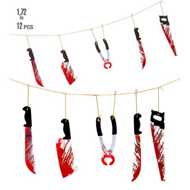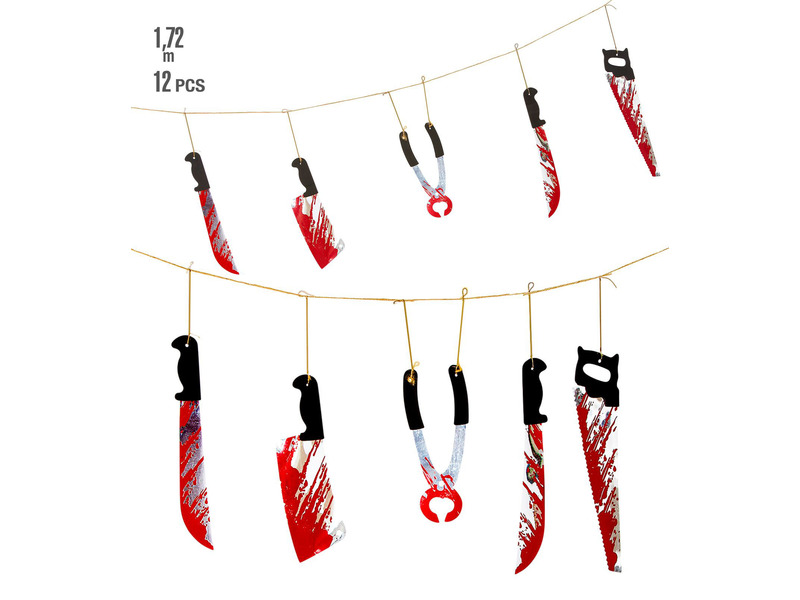 Készülj fel a legfélelmetesebb Halloweenre ezzel a vérfagyasztó girlanddal! A 1,7 méter hosszú girland véres eszközökkel díszítve tökéletes kiegészítője lesz bármelyik Halloween bulinak vagy dekorációnak. A papírból készült girland könnyen felakasztható, és garantáltan borzongást kelt minden vendégben.