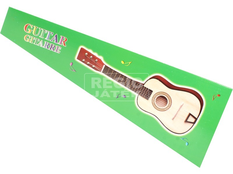 Csapj az akusztikus gitár húrjai közé! A spanyol gitár fém húrozással készült. A gitár hangolható, a húrokat a kulcsokkal lehet a megfelelő feszességűre beállítani. Ha sikerült behangolnod, egy-két egyszerűbb dallamot, dalt is megtanulhatsz rajta! Méretek: 60 x 19 x 6 cm.