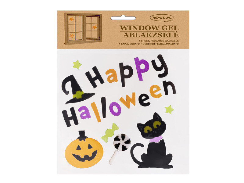 Ablakzselé Halloween cica Varázsolj rémisztően aranyos hangulatot otthonodba ezzel a Halloween témájú ablakzselével, amely cica mintákat tartalmaz! Az ablakzselé könnyen felhelyezhető és eltávolítható, így tökéletes választás a Halloween dekorációhoz. Az élénk színek és a bájos cica minták garantáltan feldobják az ünnepi hangulatot. Ideális választás ablakok, tükrök és üvegfelületek díszítéséhez. Tartós és újra felhasználható. Tökéletes Halloween dekoráció minden otthonba!