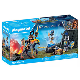 Playmobil Novelmore 71645 Harci felszerelés őrzői: Egy izgalmas utazás a középkor világába A Playmobil Novelmore 71645 Harci felszerelés őrzői szett egy fantasztikus ajándék minden olyan gyermek számára, aki szereti a kalandokat, a lovagokat és a középkori világot. A készlettel a kicsik saját történeteket alkothatnak, és elmerülhetnek a hősies küzdelmek világában. Miért különleges ez a készlet? Részletes figurák és kiegészítők: A szettben található két minifigura, a bátor Novelmore-i lovag és a titokzatos fekete lovag rendkívül részletes kidolgozású .Izgalmas történetek: A Sárkánypáncélért folytatott harc izgalmas történetek alapjául szolgálhat. A gyerekek a saját képzeletük szerint alakíthatják a cselekményt és a szereplők sorsát. A játék fejleszti a gyerekek képzelőerejét, kreativitását, finommotorikus képességeit és a szerepjáték során a társas készségeiket.