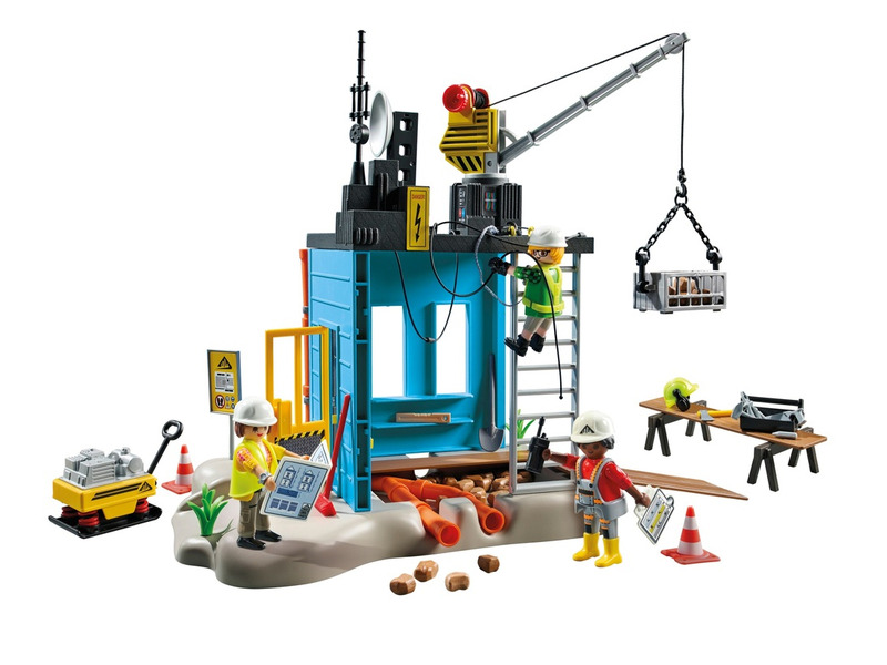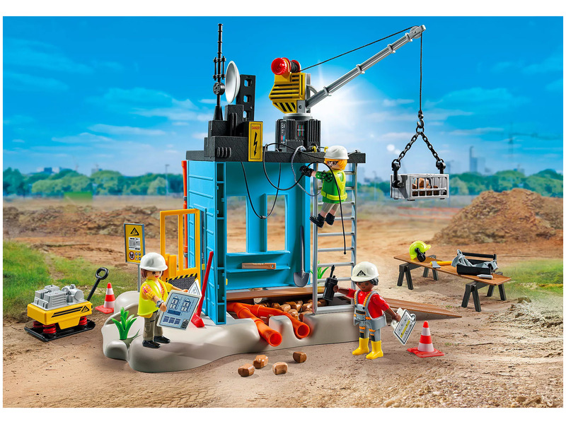 Kis kotrógép 70443 szerkezeti elemmel és lánchajtással. A kotrógép képes eltávolítani az ömlesztett anyagot a talajról, és a csövek lerakásakor is használható. A kis kotrógép a gyors és rugalmas munkavégzéshez szolgál. Mindenekelőtt az építőmunkás egy kotrógép segítségével mélyíti el az árok köveit. A tisztítás után a szennyvízcsöveket az alapba helyezzük. Amint az összes cső a megfelelő pozícióba kerül, a padlólapok követik őket. Az építész a folyamat minden egyes lépését ellenőrzi. A szögmérő készülék segítségével az összes falat megméri, hogy később a ház biztonságos és egyszerű legyen. Ez a ház egy remekmű lesz. A játékszett tartalmaz két Playmobil figurát, egy kis lánchajtású kotrógépet, egy állványos szögmérőt, egy két fali elemmel ellátott ház sarkát, egy padlólapot, egy lapos tetőt és fa padlólapokat, valamint számos egyéb építési kiegészítőt.
