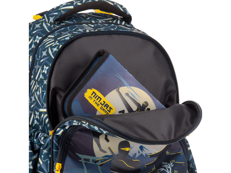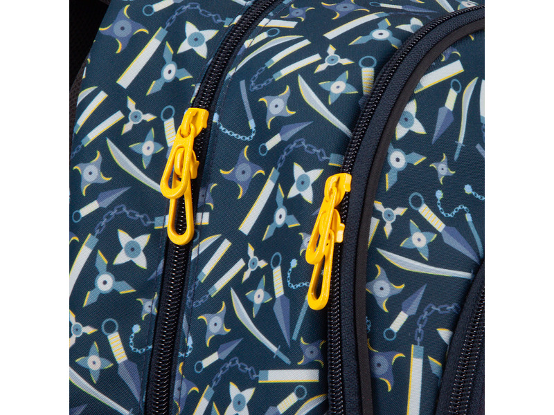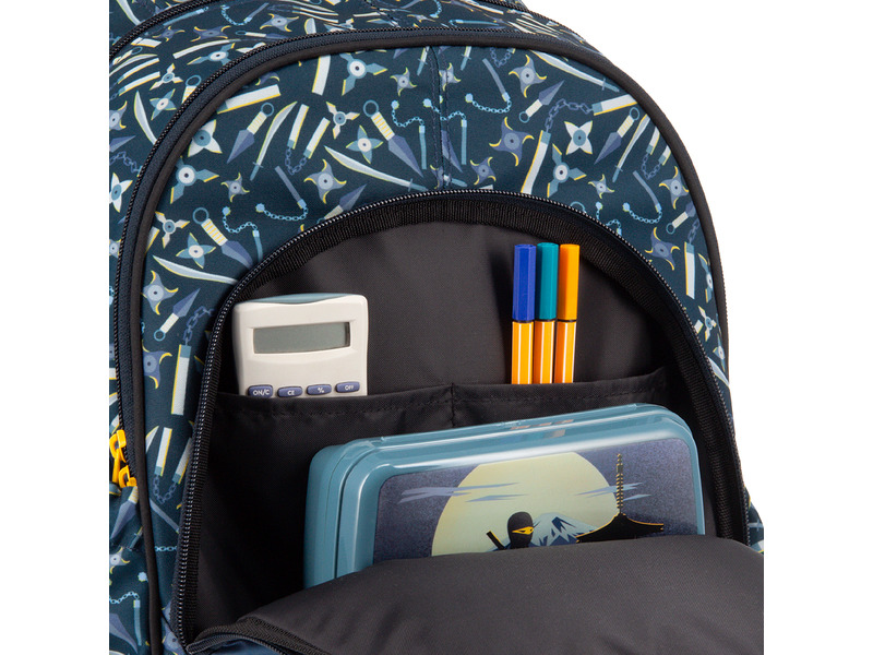 Készülj fel az iskolára stílusosan az Anatómiai Ninjas In The Dark iskolatáskával! Az ergonomikus kialakítás kíméli a hátat és segíti a helyes testtartást, így hosszabb távon is kényelmes viseletet biztosít. A vagány, nindzsás mintázat sötét tónusokkal és látványos grafikával igazi különlegesség, amely biztosan kitűnik a többi táska közül. A tágas belső rekeszekben kényelmesen elférnek a könyvek, füzetek és egyéb felszerelések, a kisebb zsebek pedig praktikus megoldást nyújtanak az apróságoknak. A megerősített alj és a strapabíró anyag gondoskodik a tartósságról, míg az állítható, párnázott vállpántok maximális komfortot kínálnak. Ez az iskolatáska tökéletes választás azoknak, akik egyszerre szeretnék a kényelmet és a vagány megjelenést.