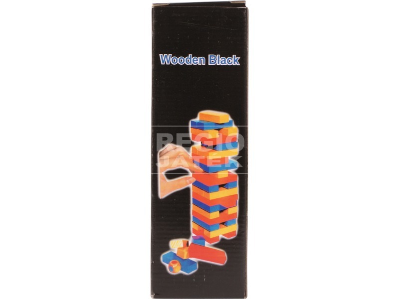 A Jenga-hoz hasonló, fából készült ügyességi társasjáték, 20 cm magas