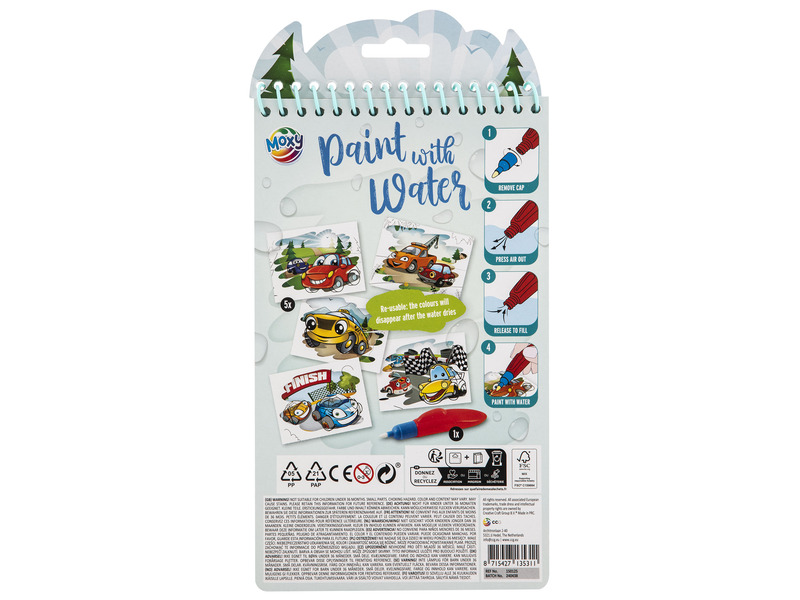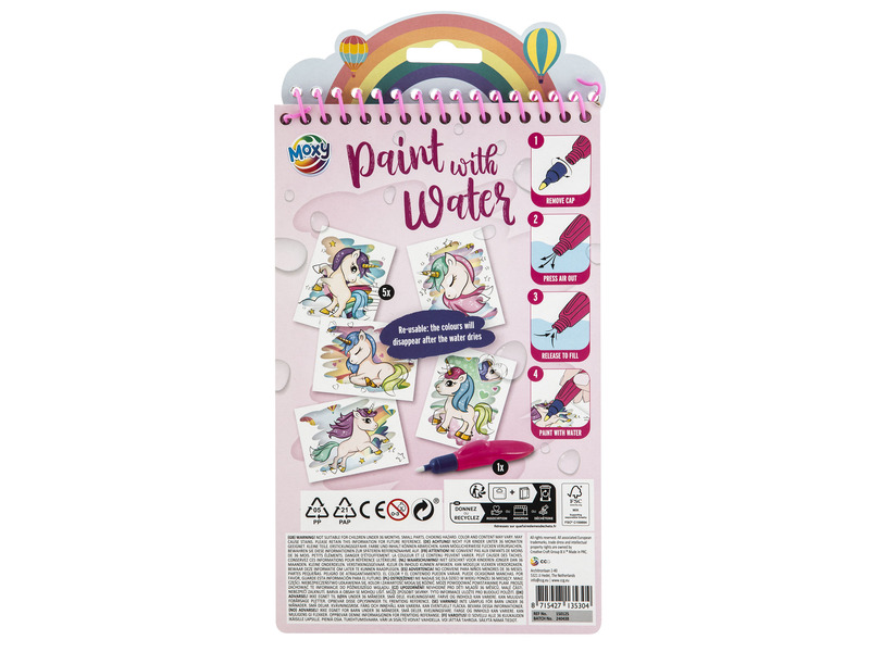 A 23×14 cm-es méret tökéletes utazáshoz, kreatív délutánokhoz vagy nyugodt, önálló játékhoz. A lapok többször használhatók: ha megszáradnak, a kép eltűnik, és kezdődhet újra a varázslat!
