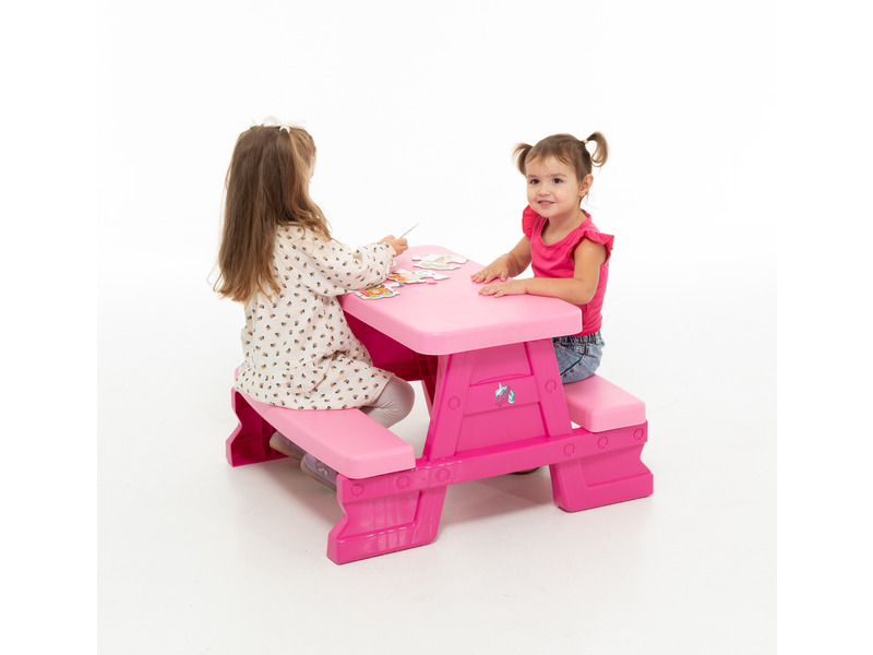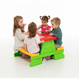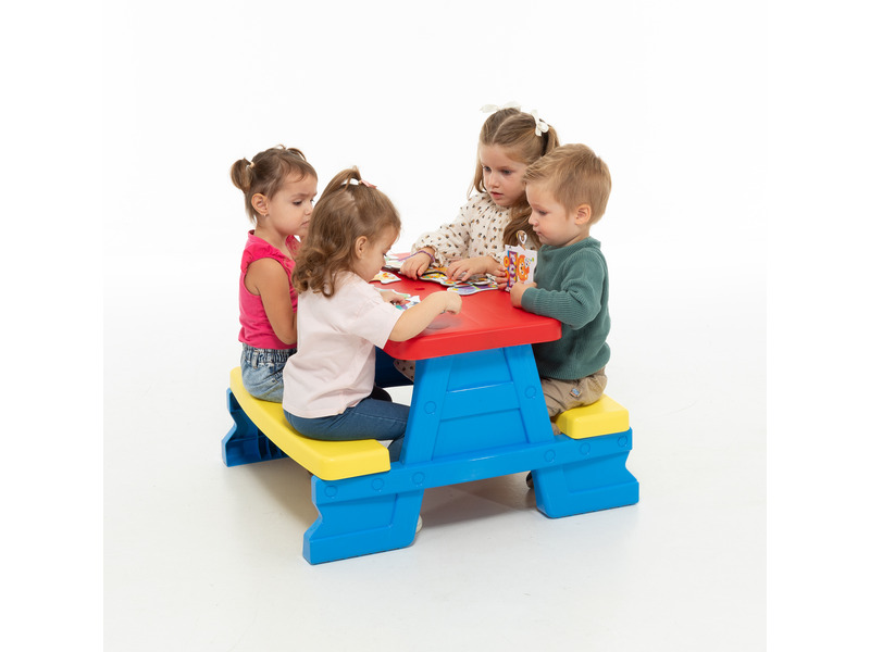 A Piknikasztal vegyes színben egy színes és strapabíró kerti bútor, amely tökéletes választás a gyerekek számára, akár beltéri, akár kültéri használatra. Ez a piknikasztal vidám színeivel és praktikus kialakításával garantáltan a gyerekek kedvence lesz.