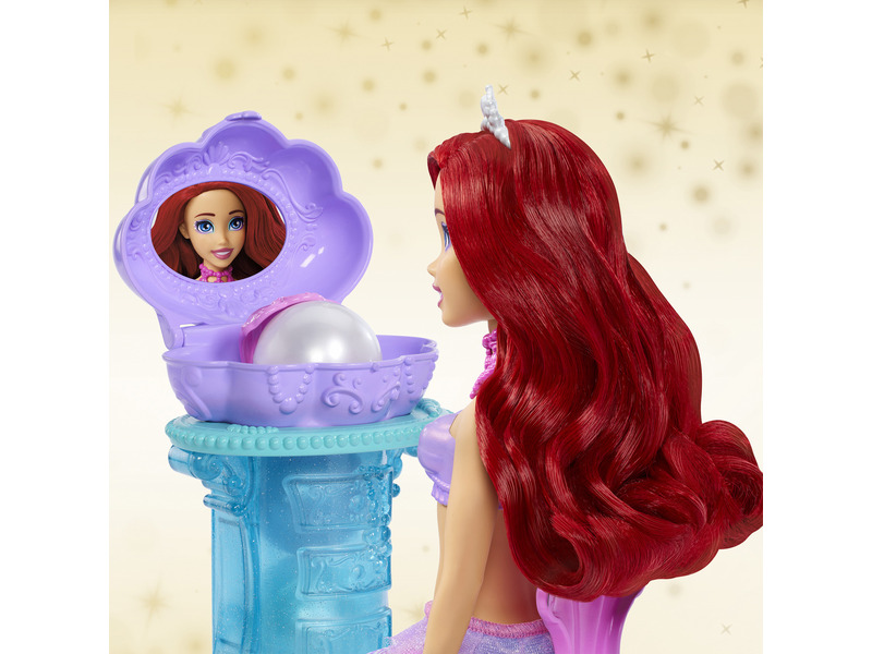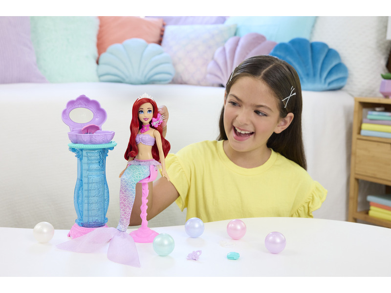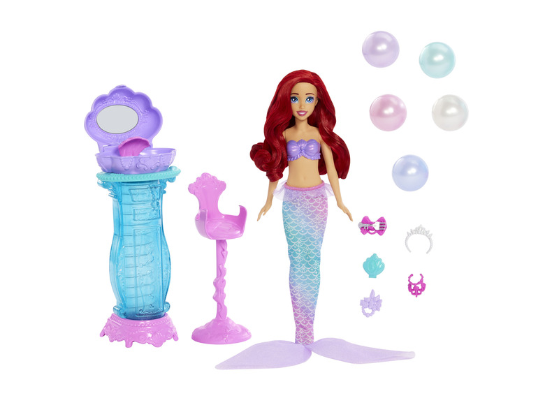 A Disney hercegnők - Ariel - Gyöngyvarázs meglepetés egy varázslatos játékszett, amely lehetővé teszi a gyerekek számára, hogy újraéljék Ariel mesés kalandjait. A készletben egy tengermélyi fésülködőasztal található, amelyben egy mesés gyöngykagyló rejti a meglepetéseket. A gyerekek újra és újra felfedezhetik a készletben található öt gyöngyöt, amelyek különféle kiegészítőket rejtenek.