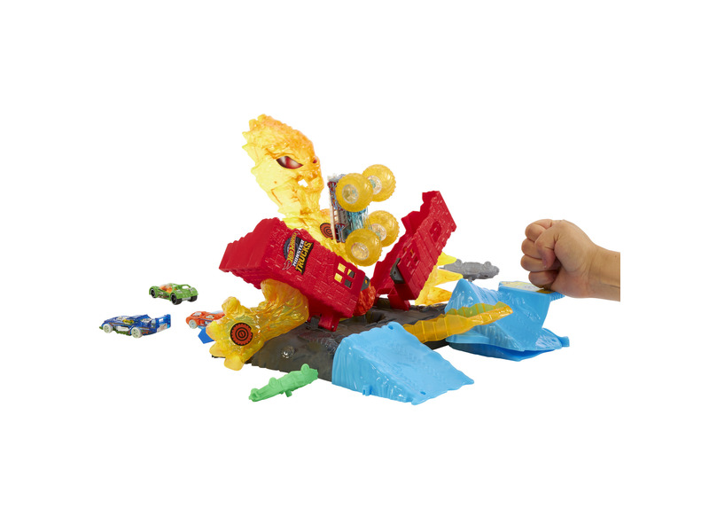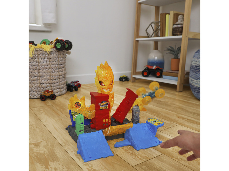 Lépj be a látványos ütközések és izgalmas versenyek világába a Hot Wheels Monster Trucks – Tűzszörny pályaszettel! Ebben a vagány játékszettben a gyerekek próbára tehetik ügyességüket, miközben hatalmas lendülettel ugratják át a lángoló akadályokat. A szett tartalmaz egy részletgazdag Monster Trucks kisautót, amely készen áll a legmerészebb mutatványokra. Tökéletes választás a Hot Wheels rajongóknak, akik imádják a látványos akciót és a kreatív játékot. Remek ajándék, ami órákon át leköti a gyerekeket és ösztönzi a fantáziájukat.