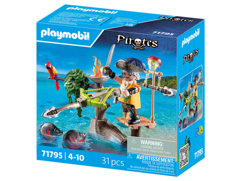 A Playmobil: Kalóz nyílpuskával izgalmas kiegészítője minden kalózos játéknak. A figura egy harcra kész kalózt ábrázol, aki nyílpuskával felszerelve indul a kalandra. A szettben a figura mellett kiegészítők is helyet kaptak, amelyek még változatosabb játékélményt nyújtanak. Strapabíró kialakításának köszönhetően hosszú ideig tartós marad, miközben fejleszti a gyerekek fantáziáját és szerepjátékát. Tökéletes választás minden Playmobil-rajongónak és a kalóztörténetek kedvelőinek.