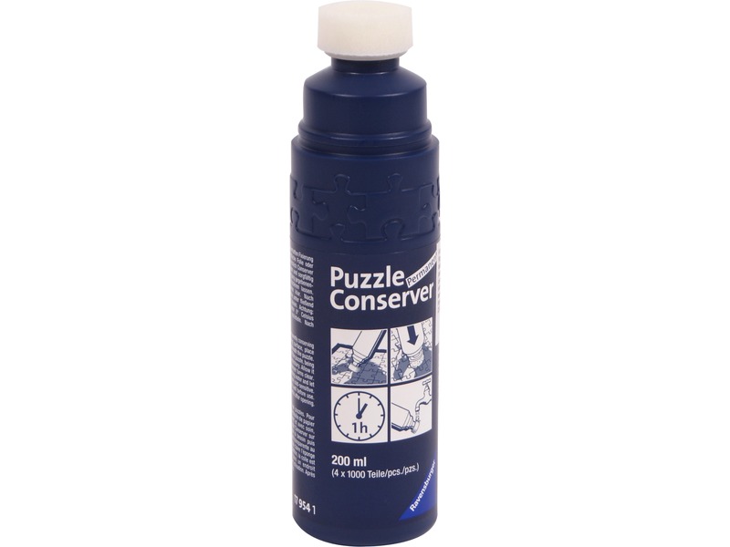 Ravensburger: Puzzle 200 ml - Puzzle ragasztó A Raversburger puzzle ragasztó (17954) az elkészült kirakók rögzítésére szolgál. Ezt a speciális, folyékony ragasztót a közvetlenül a puzzle képes felén kell egyenletesen eloszlatni a szivacs segítségével. Egy óra száradás után fátyolmentes bevonatot képez, mely megvédi a puzzle gyönyörű, élénk színeit. Felhasználható a Starline, Relife, Silhouette és minden standard Ravensburger puzzle-hoz. A flakon tartalma 8 doboz 500 db-os vagy 4 doboz 1000 darabos puzzle rögzítéséhez elegendő.