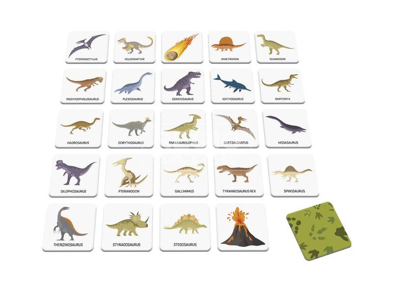 Bár nem éri el a dinoszauruszok korát, a memóriajáték még mindig szinte ősi játéknak számít. Ez azért van, mert nem kell rajta változtatni vagy újra feltalálni semmit. A memóriát és az észlelést fejlesztő játék sok generáció óta szórakoztatja a gyerekeket. A kicsik sem lesznek kivételek, ráadásul a kártyák felforgatása közben megismerik az ismert dinoszauruszfajtákat.