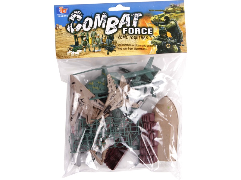 Állíts össze egy modern hadsereget, és vezesd a támadást! A Katonai játékkészlet zacskós csomagolásban műanyagból készült katonai járműveket, katona figurákat, valamint útakadályokat, mindenféle kiegészítőket tartalmaz, amik egy ostromhoz, vagy terület megvédéséhez szükségesek. A figurákat és a járműveket hadrendbe tudod állítani, illetve együtt tudod használni más katonai játékokkal is. A Katonai játékkészlet zacskós csomagolásban csomagolási méretei: 18 x 6 x 25 cm.