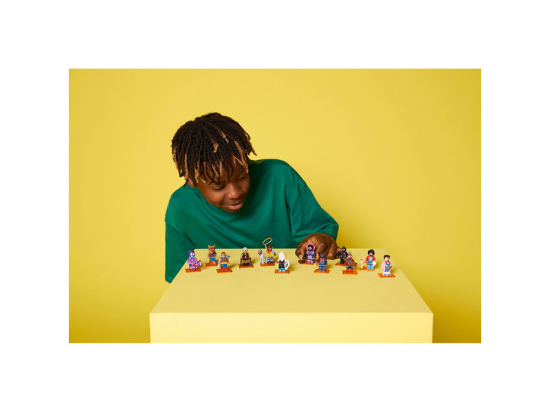 Mind a 12 LEGO Marvel játék minifigura készen áll, hogy a gyerekek játsszanak vele, mindegyik egy lezárt titkos dobozba van csomagolva, valamint 1 kiegészítő és egy gyűjtői információs füzet tartozik hozzájuk.
