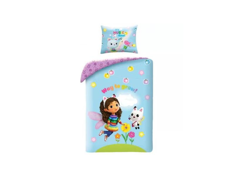 Egyszemélyes, Gabi és Pandi Pajti mintával, valamint „Way to grow! felirattal díszített ágyneműhuzat garnitúra a népszerű Gabi babaháza animációs sorozat rajongóinak. A paplanhuzat mindkét oldalán más-más minta látható. Az igényesen kidolgozott, élénk színű ágyneműszett 40 fokon mosható, közepes hőfokon vasalható, valamint gépben alacsony hőfokon szárítható. A mosás során - a színek hosszabb ideig történő megőrzésének érdekében - javasolt a huzatok kifordítása. A huzatok cipzáras kivitelezésűek, így biztosan rajta maradnak majd a párnán és a paplanon.