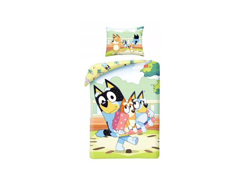 Egyszemélyes, 2 részes, Bluey karakterekkel díszített ágyneműhuzat.