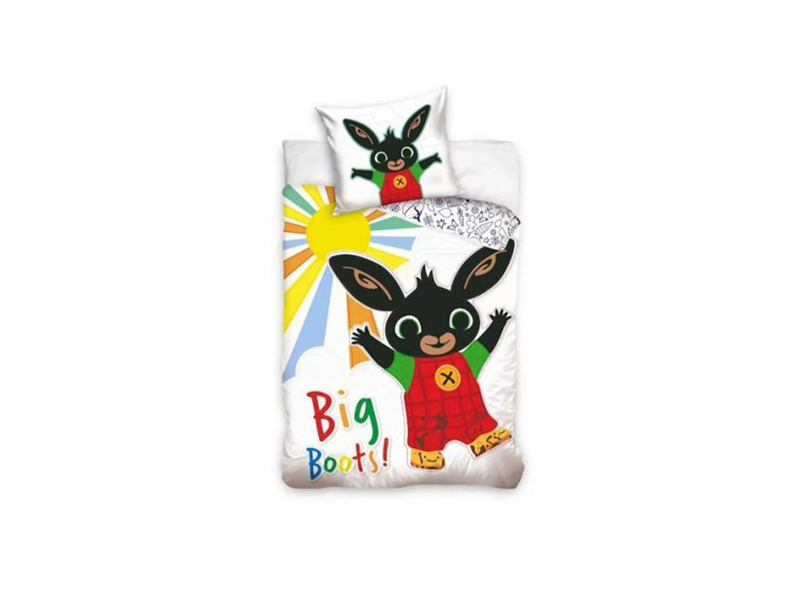 Egyszemélyes, 2 részes, Bing nyuszi karakterekkel díszített ágyneműhuzat.