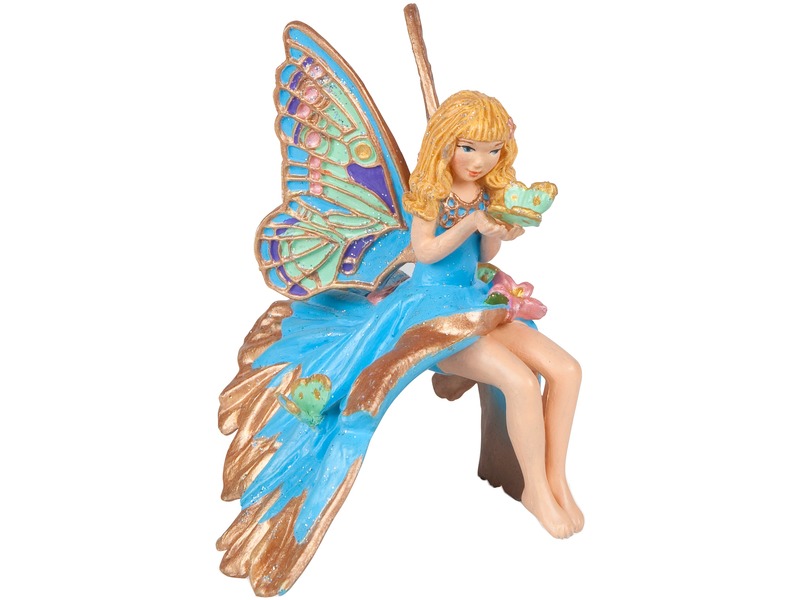 Kék tündérkislány Papo műanyag figura gyűjtőknek és minőségi gyermekjátéknak. Gyönyörűen kidolgozott arany dekorral díszített világoskék ruhás szőke ülő tündérleányka kezében pillangóval. A figura Papo tündérpónihoz van méretezve, de a póni külön kapható! Ajánljuk még Le Toy Van fa kastélyokhoz. Mérete: 7,5 cm. 3 éves kortól ajánljuk.