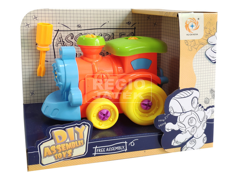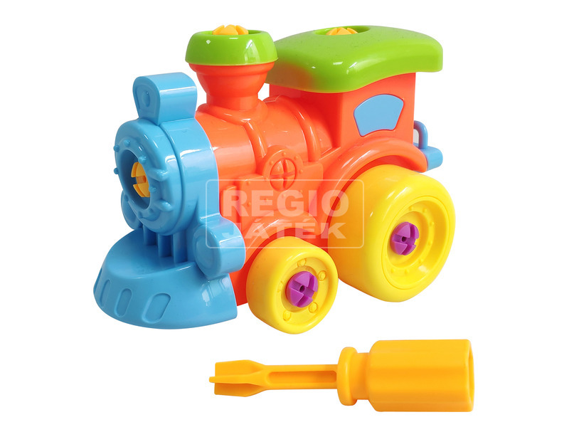 Rakj össze egy vagány gőzőst a szerelhető vonat csavarozó készlettel! A készletben egy színes mozdonyt találsz, amit elemeire tudsz bontani a csavarhúzóval. Szedd le a kerekeit, az elejét és a hátulját, valamint a tetejét. Ha szétkaptad a mozdonyt, akkor össze tudod rakni újra. A Szerelhető vonat csavarzó készlet fejleszti a kézügyességet, miközbenmegtanulod, hogyan kell bánni a csavarhúzóval. Vonat méretei: 15 x 8 x 12 cm.