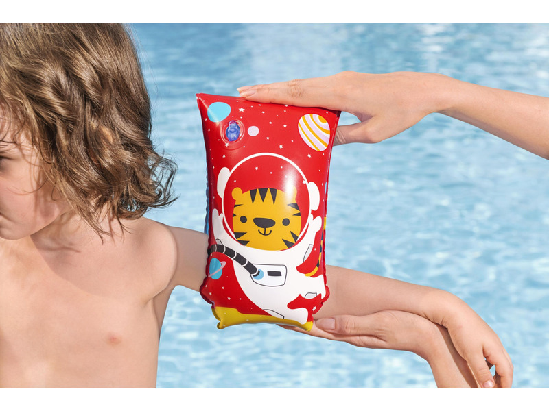 Ha tanulod az úszást, jól jön a vidám állatmintás karúszó! A karúszó kisebbeknek készült. A karúszó fent tart a víz felszínén, biztonsági szelepekkel készült, egy-két fújással fel tudod fújni. A karúszó felfújt méretei: 30 x 15 cm.