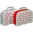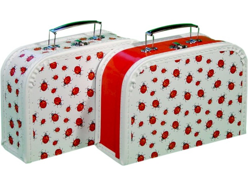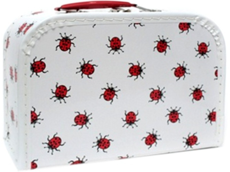 Kemény kartonból készült, varrott műbőr szegélyű bőrönd, fém foganytúval és csattal. A bőrönd fehér színű és katicabogarakkal van díszítve. Tárold benne kedvenc játékaidat, amiket a bőrönd segítségével bárhova magaddal tudsz vinni.
