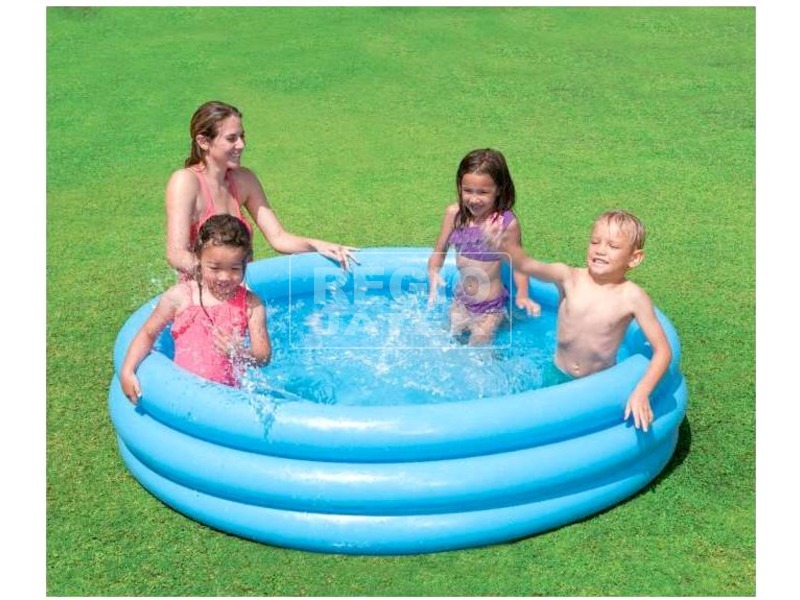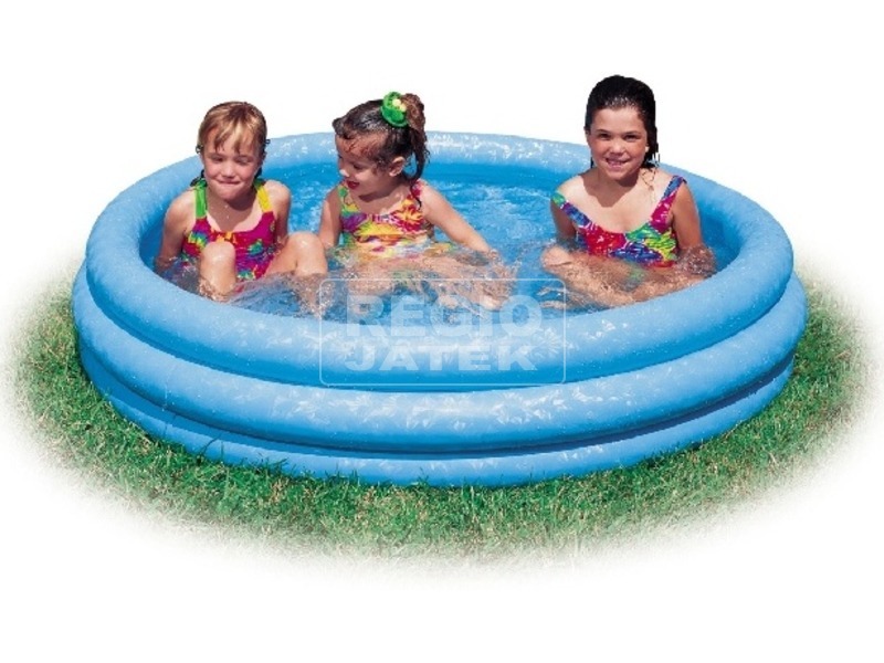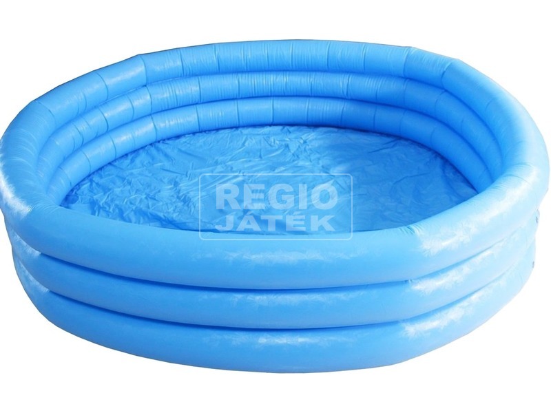 Kék színű háromgyűrűs medence, a forró nyári napokra! A kék Kristály háromgyűrűs medencében a forró napokon a gyerekek és felnőttek is kellemesen tudnak hűsölni, pancsolni. A háromgyűrűs medence bárhol elfér a kertben és biztonsági szelepekkel van ellátva. A készlet tartalmaz egy javító tapaszt is. Felfújt méretek: 147 x 33 cm.