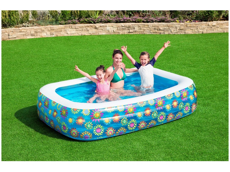 Pancsoljon a család a szögletes medencében! A nagy Szögletes medence akár két felnőttnek és gyereknek is jó a hűsöléshez a legnagyobb forróságban. A nagy medence több kamrás, biztonsági szeleppel van felszerelve, könnyen felfújható és leereszthető. A medence erős PVC-ből készült, nagyon tartós, ellenáll az időjárásnak. A készlet egy erős, öntapadó javítófoltot is tartalmaz. Felfújt méretek: 229 x 152 x 56 cm.