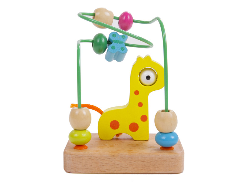 Vezesd végig a színes golyókat a zsiráf körül! A Zsiráfos fa golyóvezető egy ügyességi játék, ahol a golyókat körbe kell vezetni a drótpályán, ami körbeöleli a zsiráfot. A színes golyók mozgatása nagy mértékben fejleszti a finommotoros mozgást, a golyóvezető játék fából készült, fém drótokkal. A Zsiráfos fa golyóvezető csomagolási méretei: 10 x 7 x 13 cm.