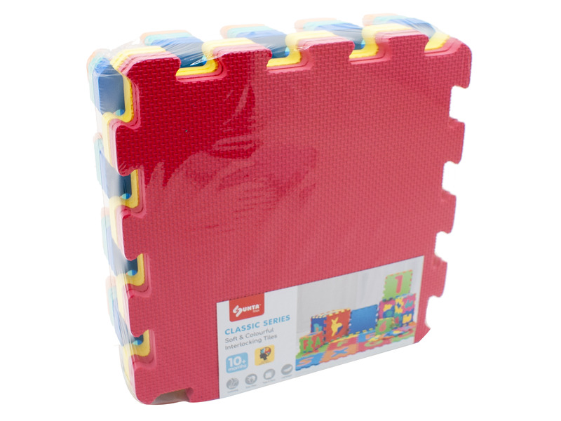 Játssz puha szőnyegfelületen! A Színes 10 darabos habszivacs szőnyeg puzzle piros, sárga, kék, zöld és narancssárga habszivacs lapokat tartalmaz, amiket egymáshoz lehet illeszteni. A szőnyeg puha, kényelmes játékfelületet biztosít a gyereknek, eséskor megvédi a sérülésektől. A Színes 10 darabos habszivacs szőnyeg puzzle mozaikdarabjainak méretei: 32 x 32 x 1 cm.