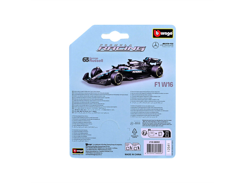 Bburago 1 /64 F1 versenyautó - Mercedes-AMG Petronas F1 W16 Team Russel RaktáronRaktáron