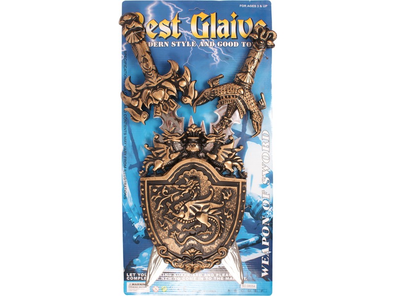 Vívd meg a lovagok csatáját kardokkal és pajzzsal! A Kard és pajzs készlet műanyagból készült, bármilyen lovagi jelmez tökéletes kiegészítője! A kardok antikolt bronz és ezüst színűek, a fegyverek puhább műanyagból készültek, ezért nem tudsz velük sérülést okozni. Kardok mérete: 55 cm, pajzs méretei: 20 x 29 cm.