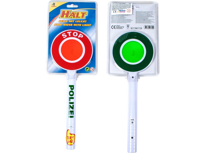 Irányítsd az autókat, bicikliseket rendőrtárcsával! A Világító forgalomirányító tárcsa egy kerek műanyag tábla, piros és zöld oldalakkal. A tárcsa fényvisszaverő felülettel készült, de ha megnyomod rajta a gombot, még világítani is fog, hogy a közlekedők messziről is láthassák, hogy meg kell állniuk, vagy haladhatnak. A Világító forgalomirányító tárcsa 2 darab AA ceruzaelemmel működik, a csomagolás az elemeket tartalmazza. Tárcsa méretei: 32 x 12 cm.