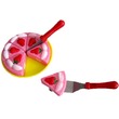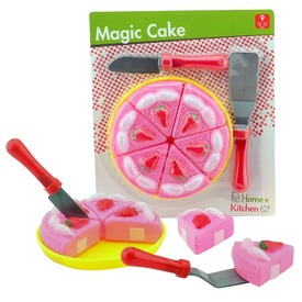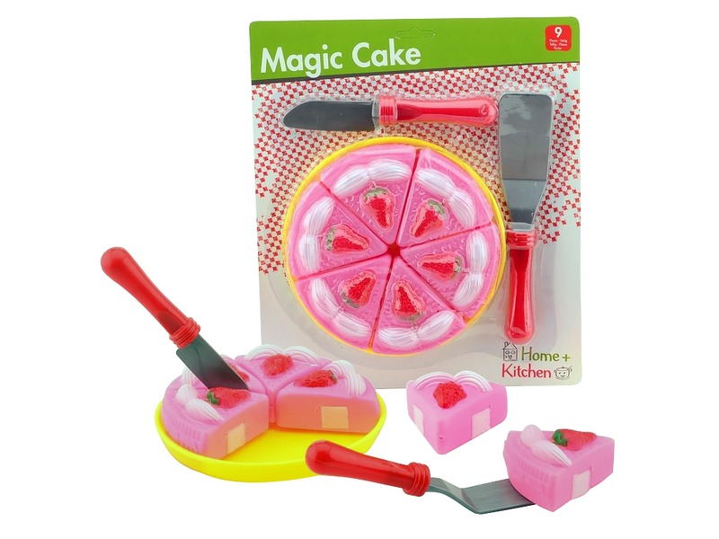 Szeleteld fel a finom rózsaszín tortát! A Vágható epertorta műanyagból készült édesség, amit hat szeletre lehet vágni. A tortaszeletek tépőzárral kapcsolódnak egymáshoz, a csomagban lévő késsel el tudod vágni a süteményt, míg a szedőlapáttal tányérra tudod tenni a tejszínhabbal, eperszemekkel díszített tortaszeleteket! A Vágható epertorta fejleszti a kézügyességet, és betekintést nyújt a konyhai munkába, a készlet a kést és a lapátot is tartalmazza. A torta átmérője: 17 cm.