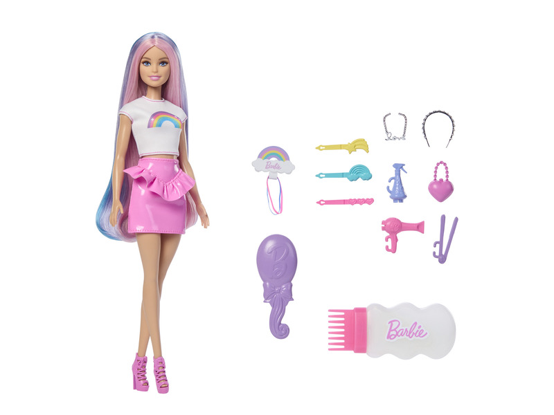 Barbie tündöklő szivárványhaj baba RaktáronRaktáron