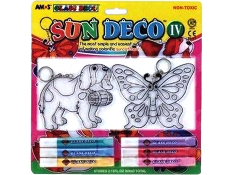 Készíts vidám kulcstartókat, lógó díszeket üvegfestékkel! Az Üvegfesték kulcstartó és dísz készítő készlet átlátszó műanyag díszeket, valamint élénk színű üvegfestékeket tartalmaz. A sablonokat be tudod festeni a festékekkel, ezután hagyd 8 órán keresztül száradni, és miután elkészült, a díszek át fogják ereszteni magukon a napfényt. A Üvegfesték kulcstartó és dísz készítő készlet tartalma: 6 darab sablon, 6 tubus üvegfesték.