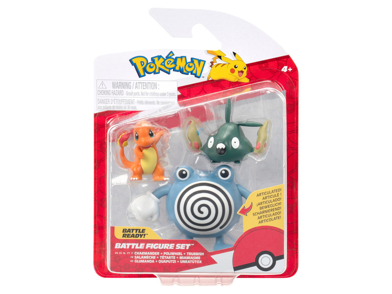 Pokémon 3 db-os figura csomag - Charmander, Trubbish & Poliwhirl