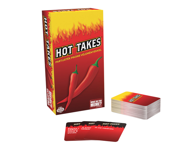 Hot Takes egy beszélgetésindító partijáték. Teszteljétek a barátságotokat, osszátok meg egymással a véleményeteket, és fedezzétek fel, miben értetek egyet és miben nem. Ki tud jobban érvelni és prezentálni? Ki szerzi a legtöbb pontot? Derítsétek ki egy komoly és izgalmas partijátékban! A játékban 300 Hot Take kártya, 10 véleménykártya, pontozó kártya és egy útmutató lesz a segítségetekre. A játék során válasszatok egy házigazdát, aki minden körben húz egy kártyát a pakliból. A kártyán szereplő megállapításról alkotott véleményetek alapján alkossatok csapatokat, majd 3 percben építsétek fel és prezentáljátok érveiteket a téma kapcsán. A bíró dönti el, hogy melyik csapat érvelt jobban, a győztes csapat minden játékosa kap egy pontot. Majd jöhet egy újabb kör, amiben lehet, hogy a korábbi csapattársad az ellenkező csapatban lesz. A játék végén az nyer, aki a legtöbb pontot szerezte. A Hot dog egy szendvics - Egyetértesz? - Nem értesz egyet? Érvelj és prezentáld a Hot Takes partijátékában!