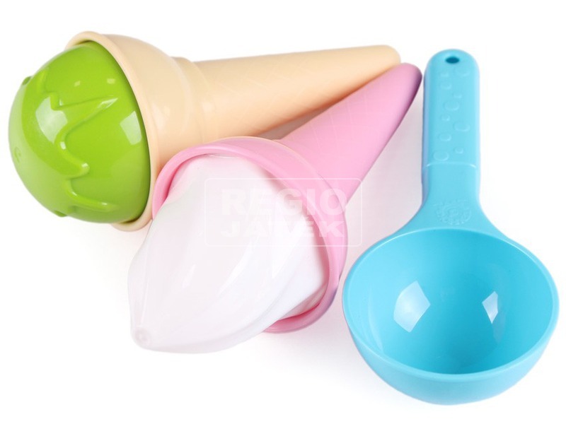 Légy te a legjobb fagyi árus a játszótéren és kínáld meg barátaidat az általad készített fagyikkal. Dolgozzatok együtt és bővítsétek a kínálatot a kedvenc ízeitekkel. A készlet tartalmaz két tölcsért, hogy egyszerre ketten is tudjatok dolgozni. Egy kanalat, amivel adagolhatjátok a kész fagylaltokat és két tető, amik segítségével a vásárló választhat, hogy milyen formájú fagyit szeretne.
