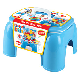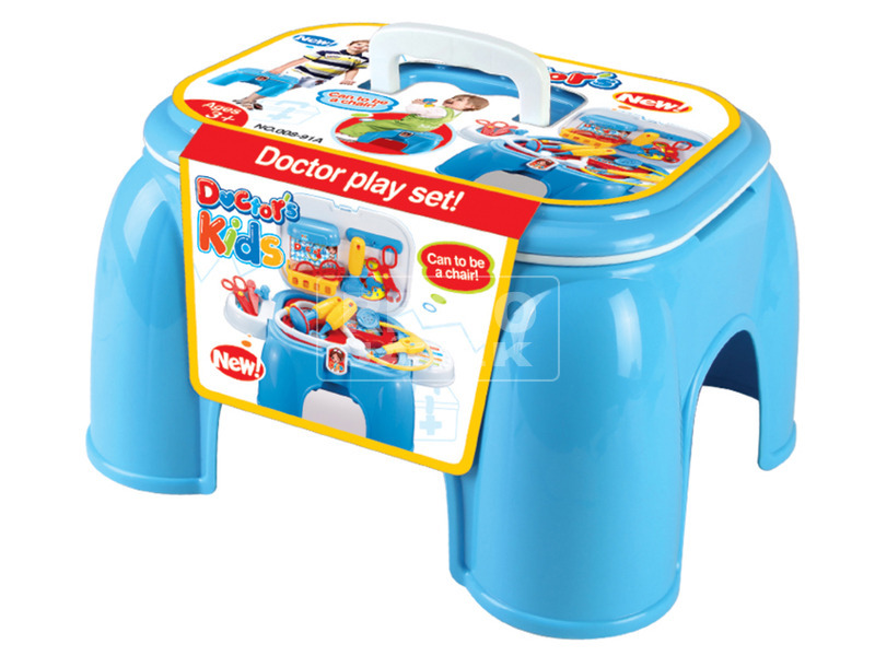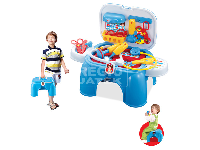 Ültesd le a beteget, vizsgáld és gyógyítsd meg! Az Orvosi készlet ülőkében mindent tartalmaz, amire egy felkészült doktornak szüksége van. A műanyag eszközökkel meg tudod vizsgálni a pácienst, a sztetoszkóppal hallgasd meg a szívverését! A reflexeket, a lázát, a látását és a fogait is végig tudod nézni az eszközökkel, és ha sikerült rájönnöd, hogy milyen betegségben szenved, akkor elkezdheted a kezelést. Az Orvosi készlet ülőkében műanyagból készült, könnyen hordozható. Az ülőkére leültetheted a beteget, a fedelében tudod tárolni az orvosi műszereket. Méretek: 39 x 19 x 26 cm.