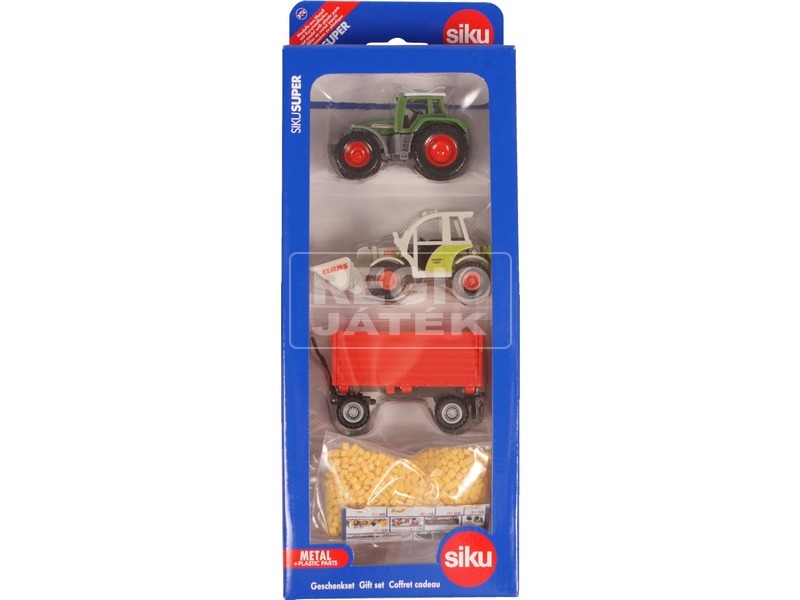 Szállíts kukoricát Siku Claas traktorokkal! A Siku: Mezőgazdasági munkagép készlet 1:87 egy markoló kanalas traktort, egy vontatótraktort és egy utánfutót rejt magában, amivel a kukoricát tudod szállítmányozni. Az utánfutót a traktorok mögé tudod kötni, és el tudod vontatni a kukoricát messzebbre! A Siku: Mezőgazdasági munkagép készlet 1:87 együtt használható más 1:87 méretarányú autópályákkal, játékkészletekkel is. Csomagolás méretei: 29 x 5 x 11 cm.