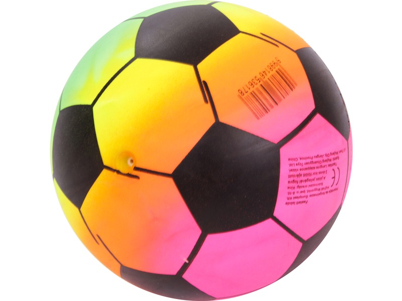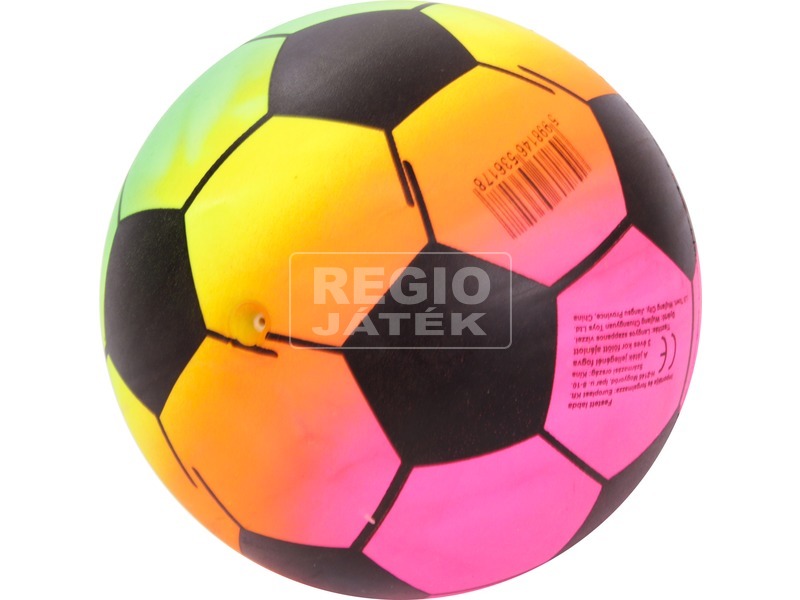Focilabdát mintázó labda, a szivárvány minden színében! A Szivárvány gumilabda egy tűszelepen keresztül felfújható labda, fényes felülettel. A labdával bármilyen labdajátékot játszhattok, legyen szó fociról, vagy akár kidobósról, kézilabdáról. A Szivárvány gumilabda átmérője: 14 cm.