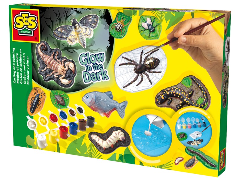 Rakj a szobádba ijesztő csúszómászókat! A SES Foszforeszkáló állatok gipszkiöntő készlettel bogarakat, skorpiót, pókot, legyet és egyéb riasztó rovarokat tudsz elkészíteni, öntőforma és festékek segítségével. Keverd vízzel tejföl sűrűségűre a modellgipszet, öntsd a formába, és ha megszáradt, akkor fesd ki a színes festékekkel. A készlet egy tégely fluoreszkáló festéket is tartalmaz, ami nappal feltöltődik fénnyel, és a sötétben hosszú ideig világít. A Foszforeszkáló állatok gipszkiöntő készlet csomagolási méretei: 30 x 3 x 20 cm.