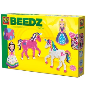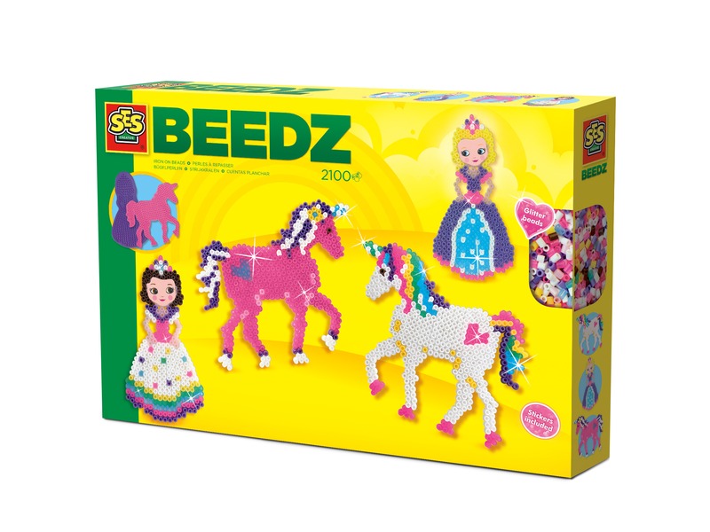 Egyszarvúk és királylányok, vasalható gyöngyökből! A SES Unikornisok és hercegnők vasalható gyöngy készlet lukas, színes henger alakú gyöngyöket, valamint vasalópapírt és sablonokat tartalmaz, amikkel néhány egyszarvú és hercegnő képét tudod elkészíteni. Csak tedd a tüskés lapra színek szerint a gyöngyöket, tegyél rá vasalópapírt, majd a forró vasalóval simítsd el, a gyöngyök összeolvadnak, megalkotva a különleges képeket! A Unikornisok és hercegnők vasalható gyöngy készlet összesen 2100 darab gyöngyöt tartalmaz. Csomagolás méretei: 30 x 4 x 20 cm.